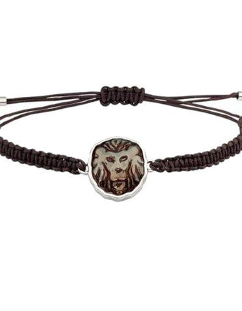 Bracciale Swarovski By Fiona, referenza 5352871, realizzato con cordino intrecciato e cristallo swarovski lavorato che rappresenta la testa del leone.