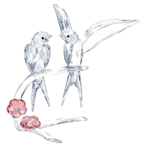 Raffigurando una coppia di rondini appollaiate su un ramo, questo elegante design è realizzato puramente in Clear Crystal, con dettagli di colore rosa, ed è dotato di 863 straordinarie sfaccettature. Simbolo di grazia, felicità e amore, è un meraviglioso regalo simbolico per ogni occasione romantica, oppure un’intramontabile aggiunta ad ogni collezione ispirata alla natura. Oggetto decorativo. Non è un giocattolo. Non adatto a bambini di età inferiore ai 15 anni.