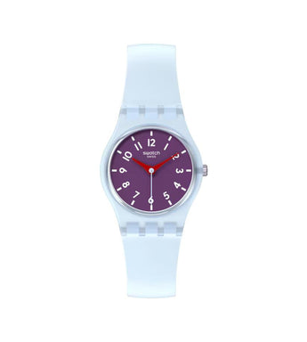 Un orologio essenziale della collezione Swatch ORIGINALS, il Movimento è dotato di un meccanismo al quarzo affidabile e impermeabile fino a 3 bar. Il cinturino in silicone blu si chiude con una fibbia in plastica, mentre la cassa rotonda presenta un bellissimo quadrante viola. Aggiungi un tocco di colore al tuo look!