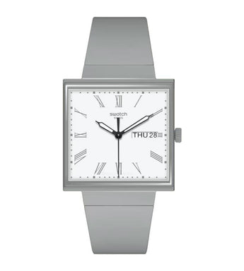 Scopri un'innovativa combinazione di stile e funzionalità con l'orologio Swatch Quadrato What If Gray. Dotato di un movimento al quarzo affidabile, impermeabile fino a 2 bar e con cinturino e fibbia in materiale di origine biologica, questo orologio sfoggia una cassa grigia in bioceramica dalla forma quadrata ed è parte della collezione What If?