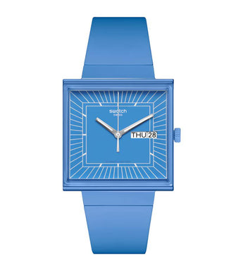 Con l'innovativo design della cassa quadrata, la vista laterale degli indici bianchi su sfondo azzurro cielo dell'orologio BIOCERAMIC lascia senza fiato. Grazie al vetro edge-to-edge, non perderai mai di vista l'ora. Lancette fosforescenti e finestra per la data a ore 3 lo rendono ancora più completo. Completa il tuo look con il cinturino integrato biosourced e la fibbia BIOCERAMIC. Il coperchio della batteria raffigura il quadrante, simbolo della bellezza di questo orologio.