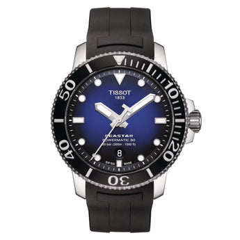 Orologio Tissot da uomo, cassa in acciaio inossidabile con un diametro di 43mm, vetro in zaffiro antigraffio. Colore del quadrante blu sfumato. Meccanismo automatico calibro Powermatic 80.111 con una riserva di carica fino 80 ore. Cinturino in gomma.