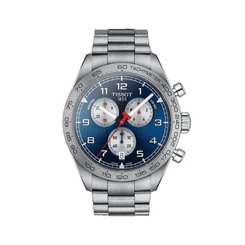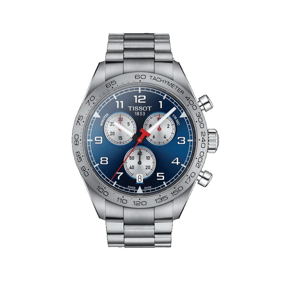 Orologio Tissot PRS 516 Chronograph, cassa in acciaio inossidabile con un diametro di 45mm, vetro in zaffiro antigraffio. Il meccanismo è al quarzo modello ETA G10.212 con funzione di orario, datario e cronografo. Il quadrante è di colore blu con numeri arabi e indici dipinti.