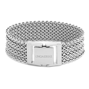 in maglia chicco di riso con chiusura a cassetta. Un bracciale