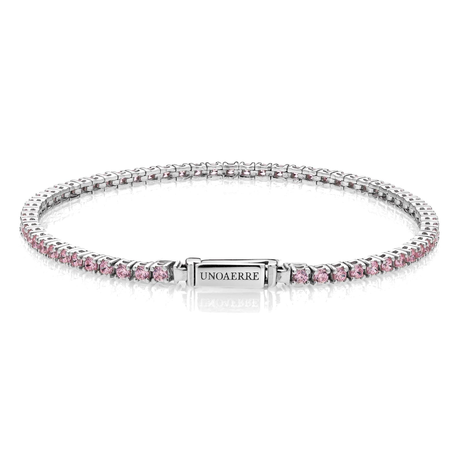 Bracciale Unoaerre in argento 925 modello tennis con pietre rosa. Chiusura a cassetta con logo.