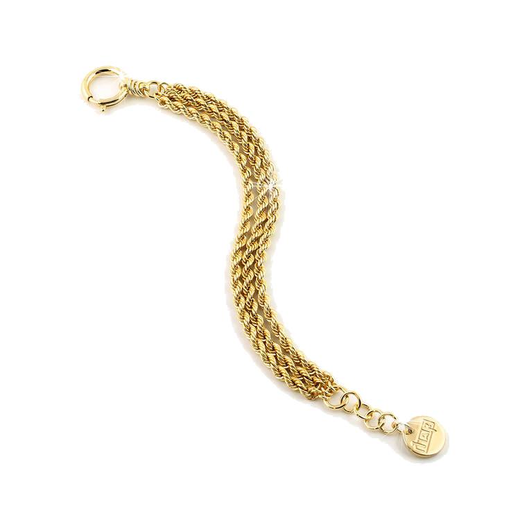 Bracciale Unoaerre in bronzo placcato in oro giallo, multifilo con catena a corda. Chiusura a moschettone. Lunghezza 19 Cm più regolazione.