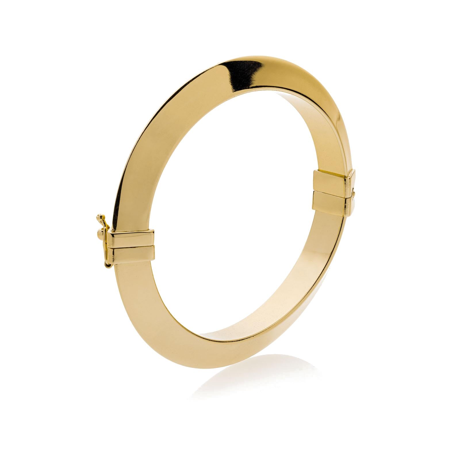 Bracciale Unoaerre rigido a tubo triangolare con chiusura a scatto laterale. Realizzato in bronzo con placcatura in oro giallo.