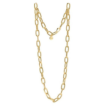 Questa collana in bronzo è lunga 107 cm e presenta una catena forzatina con chiusura a moschettone. Scegli tra la finitura lucida o sabbiata e aggiungi un tocco deciso e grintoso ai tuoi look. Ideale per essere indossata a doppio giro, questa collana è perfetta per chi ama gli accessori che fanno la differenza.