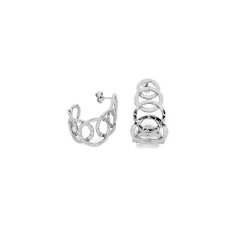 Orecchini Unoaerre placcati rodio, composti da sette cerchi con lavorazione martellata. Chiusura a farfalla.
