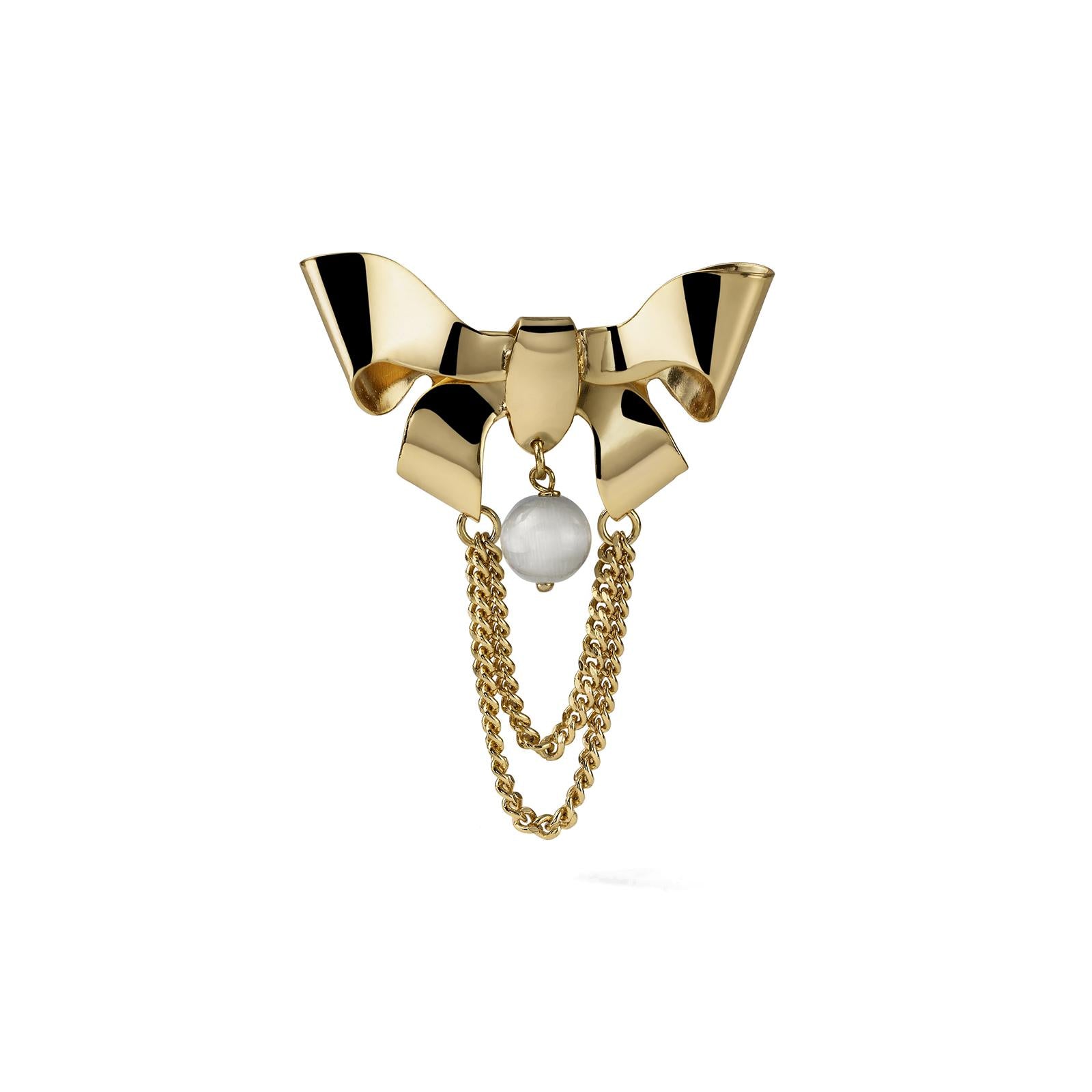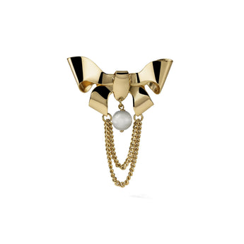 a forma di fiocco con perla, catena pendente e bagno in oro. Da