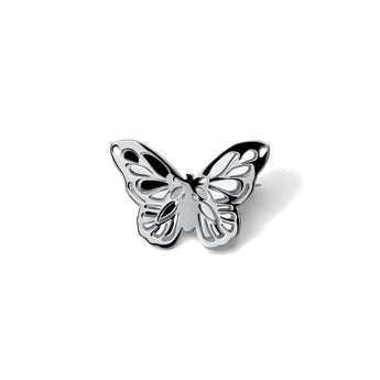 a forma di farfalla piccola in finitura lucida argentata e lavorazione