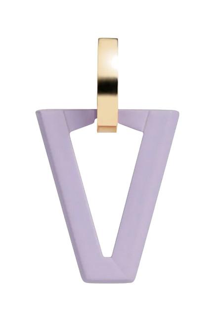 Mono orecchino Valentina Ferragni Uali Lillac, realizzato in argneto 925 con placcatura in oro giallo. Il bagno di colore è lilla, il diametro del cerchio è di 1 cm con una lunghezza di 2,4 cm.