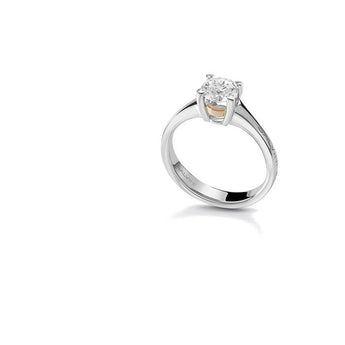 Anello solitario Salvini Gioielli della collezione Battito, realizzato in oro bianco 18k e diamante naturale taglio brillante. La caratura della pietra è 0,20 con un colore F e qualità SI.