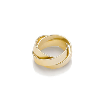 Lasciati conquistare dalla raffinatezza senza tempo di questo anello dorato a tre fasce intrecciate. Il suo design elegante e minimalista prende ispirazione dall'armonia del sistema solare, dando vita a un gioiello moderno, luminoso e ricco di personalità. Perfetto per aggiungere un tocco di classe al tuo look quotidiano o per impreziosire le occasioni speciali.