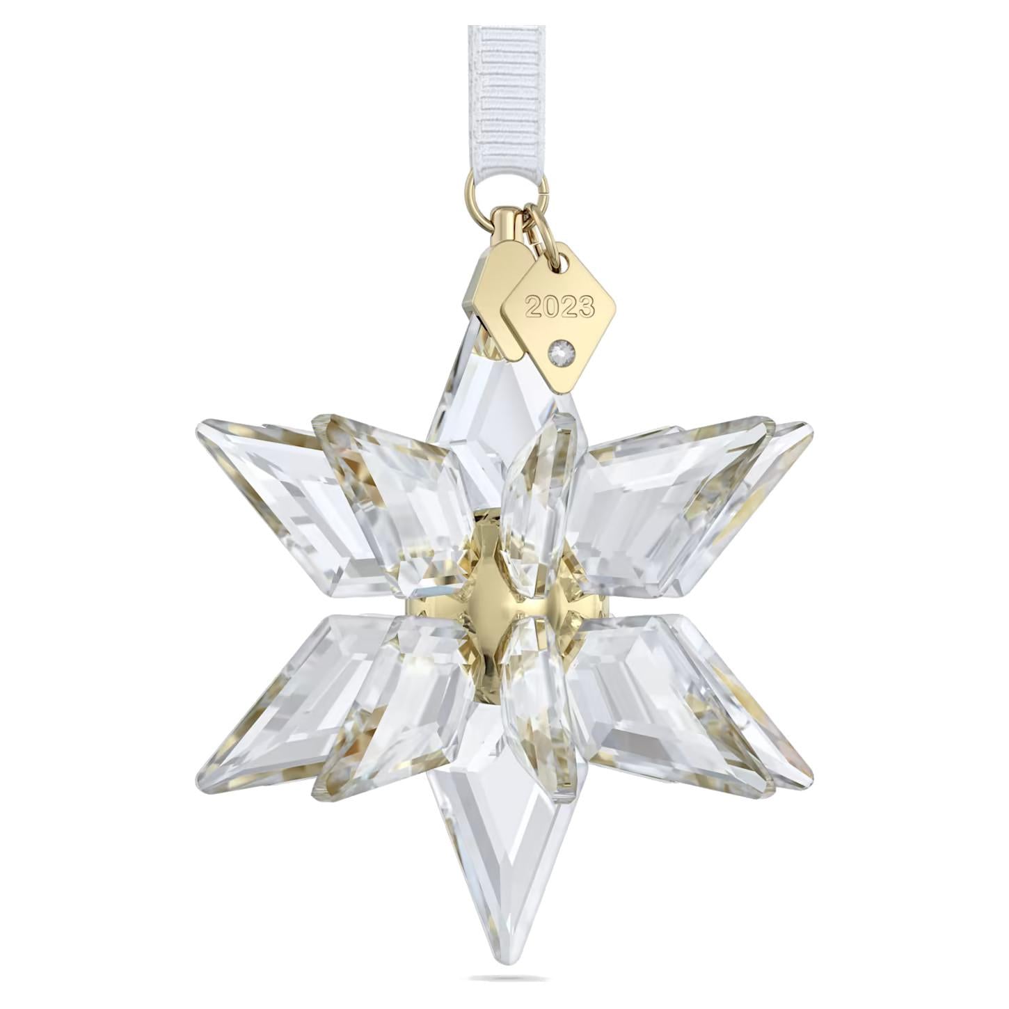 La Swarovski Annual Edition Decorazione 3D è un modo davvero meraviglioso di festeggiare alla grande il Natale. Il suo design a forma di stella, con le sue 340 sfaccettature che catturano la luce e gli accenti placcati color oro champagne che la rendono ancora più radiosa, è uno straordinario esempio di savoir-faire. La stella è appesa ad un nastro in gros-grain bianco e presenta una targhetta placcata color oro con inciso l'anno "2023". Ideale da appendere alla finestra o all'albero di Natale, infonderà una luce magica alla decorazione natalizia della tua casa. Oggetto decorativo. Non è un giocattolo. Non adatto a minori di età inferiore ai 15 anni.