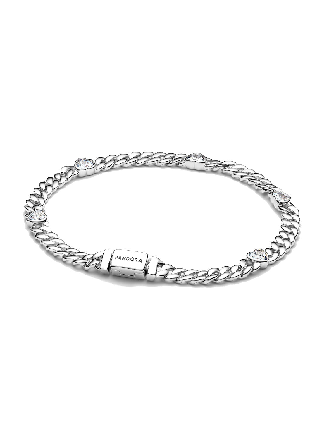 Celebra l'amore ogni giorno con questo raffinato bracciale maglia cubana in Argento Sterling 925, impreziosito da pietre a forma di cuore incastonate a intervalli lungo la catena. Un gioiello elegante e simbolico, perfetto per esprimere affetto e stile senza tempo.