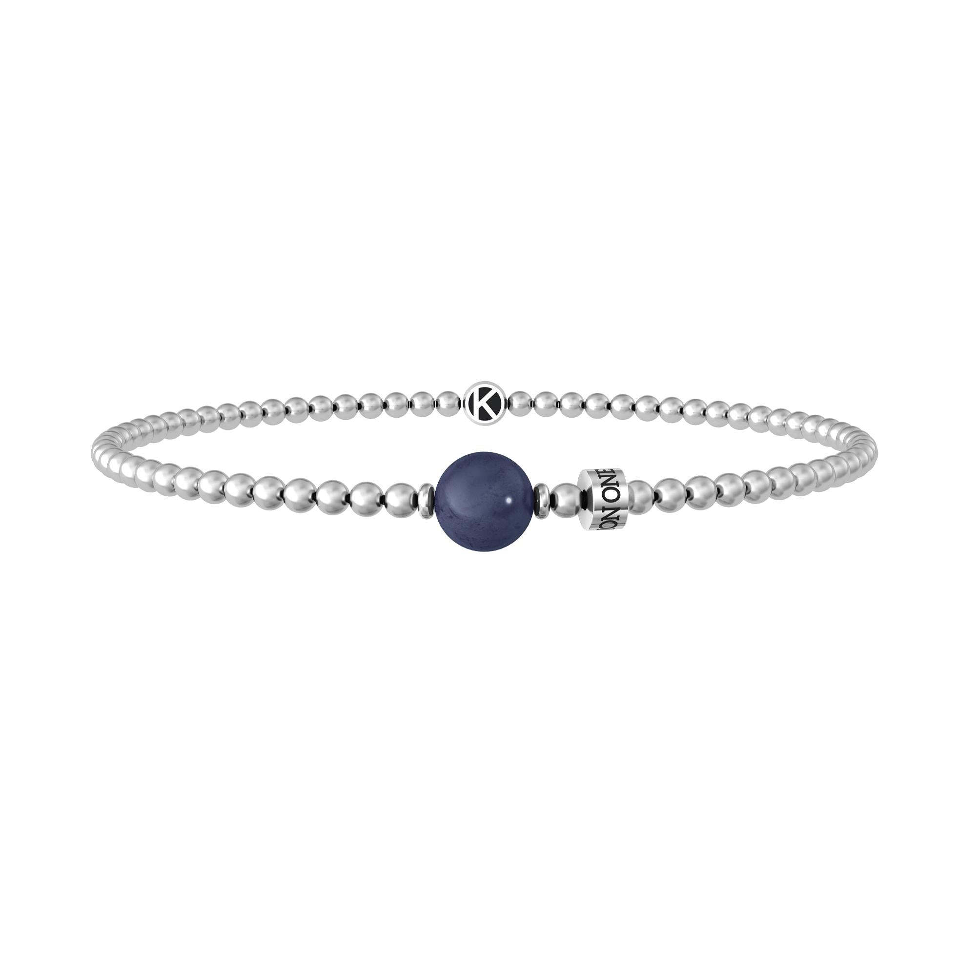 Il bracciale elastico Kidult per uomo è realizzato in Acciaio 316L e Sodalite Blu. Le sfere hanno un diametro di 3 mm e la sodalite blu un diametro di 8 mm. La misura unica è regolabile per vestire ogni polso e la circonferenza massima è di 19 cm. Le pietre naturali potrebbero variare di colore nelle diverse composizioni.