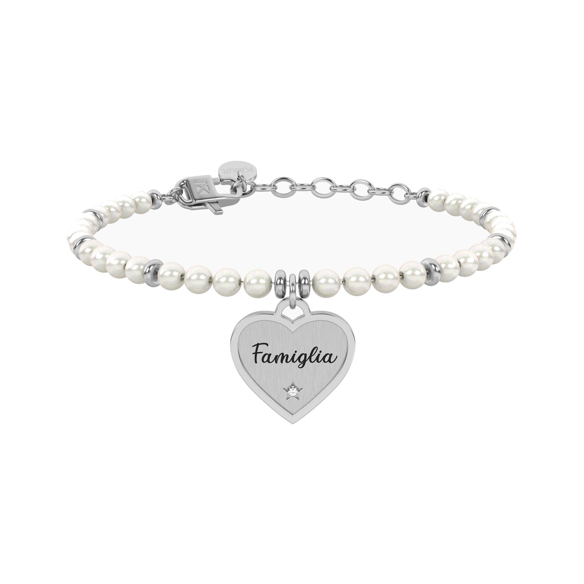 Bracciale da donna regolabile in acciaio lucido e satinato con perle