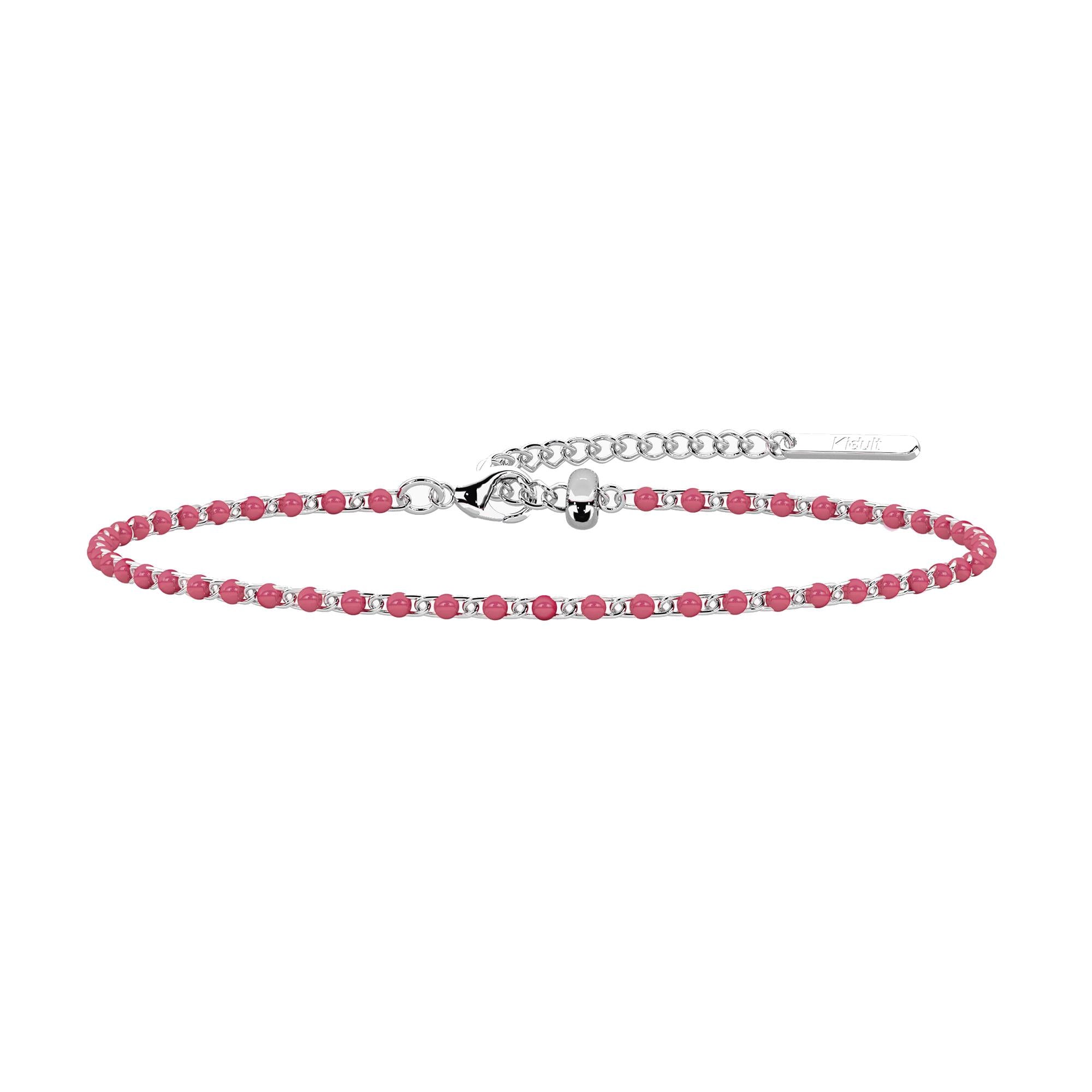 Cavigliera componibile in acciaio e inserti smaltati rosa. Sfila lo stopper e inserisci i tuoi charm.