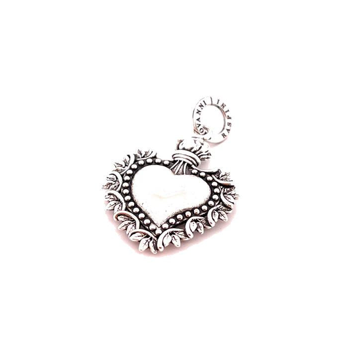 Ciondolo Giovanni Raspini cuore votivo grande. Realizzato in argento 925 con lavorazione lucida e brunita.