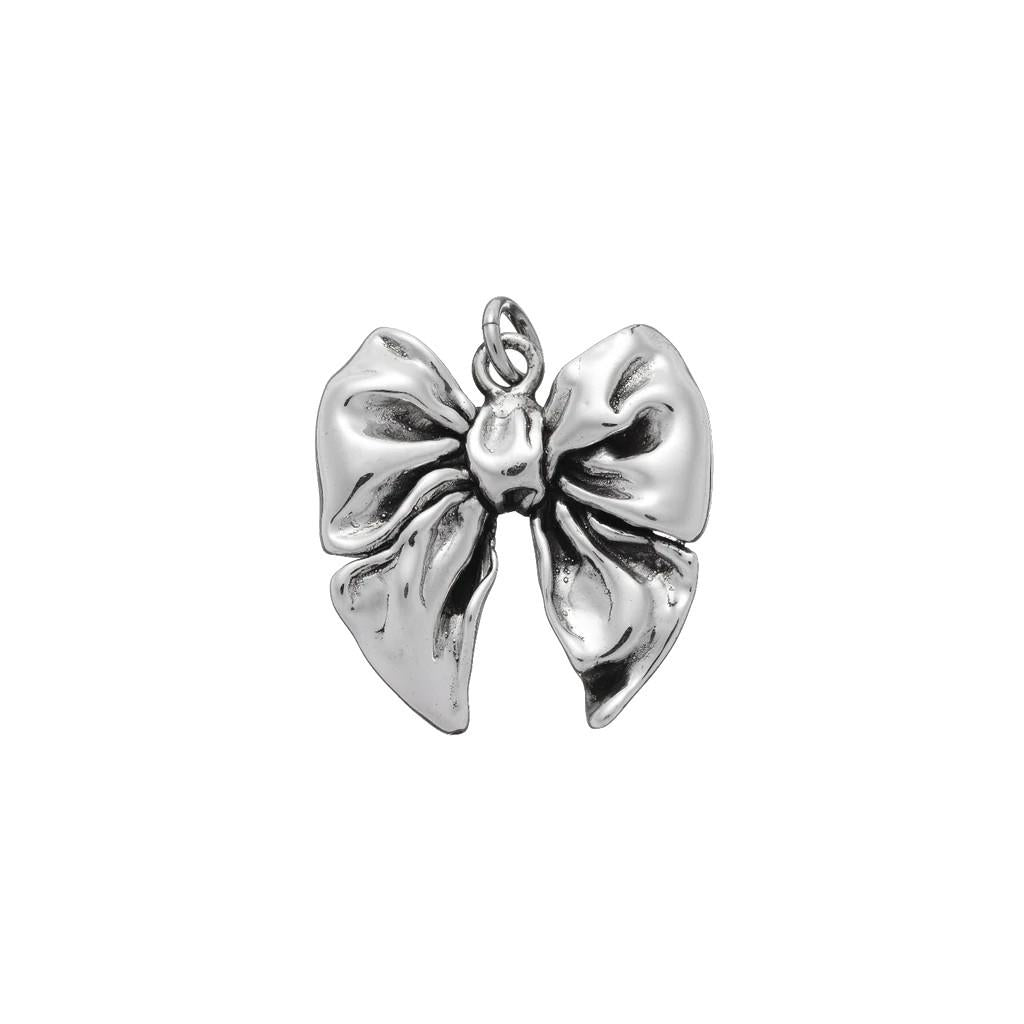 Charm Giovanni Raspini fiocco medio, realizzato in argento 925 con lavorazione lucida e brunita. Si può usare come pendente in una collana o applicare al bracciale maglia rolò.