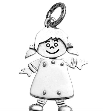Ciondolo Giovanni Raspini bambina grande, realizzato in argento 925 con finitura lucida e brunita. L'altezza è di 3,2 cm (esclusa la maglia di 0,9 cm).