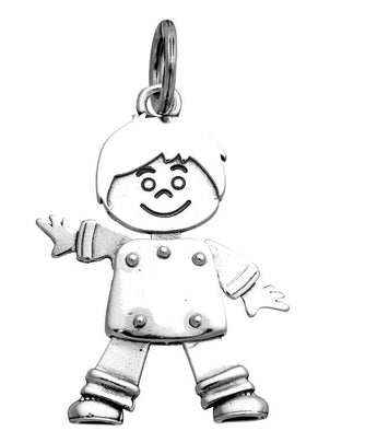 Ciondolo Giovanni Raspini bambino grande, realizzato in argento 925 con finitura lucida e brunita. L'altezza è di 3,2 cm (esclusa la maglia di 0,9 cm).