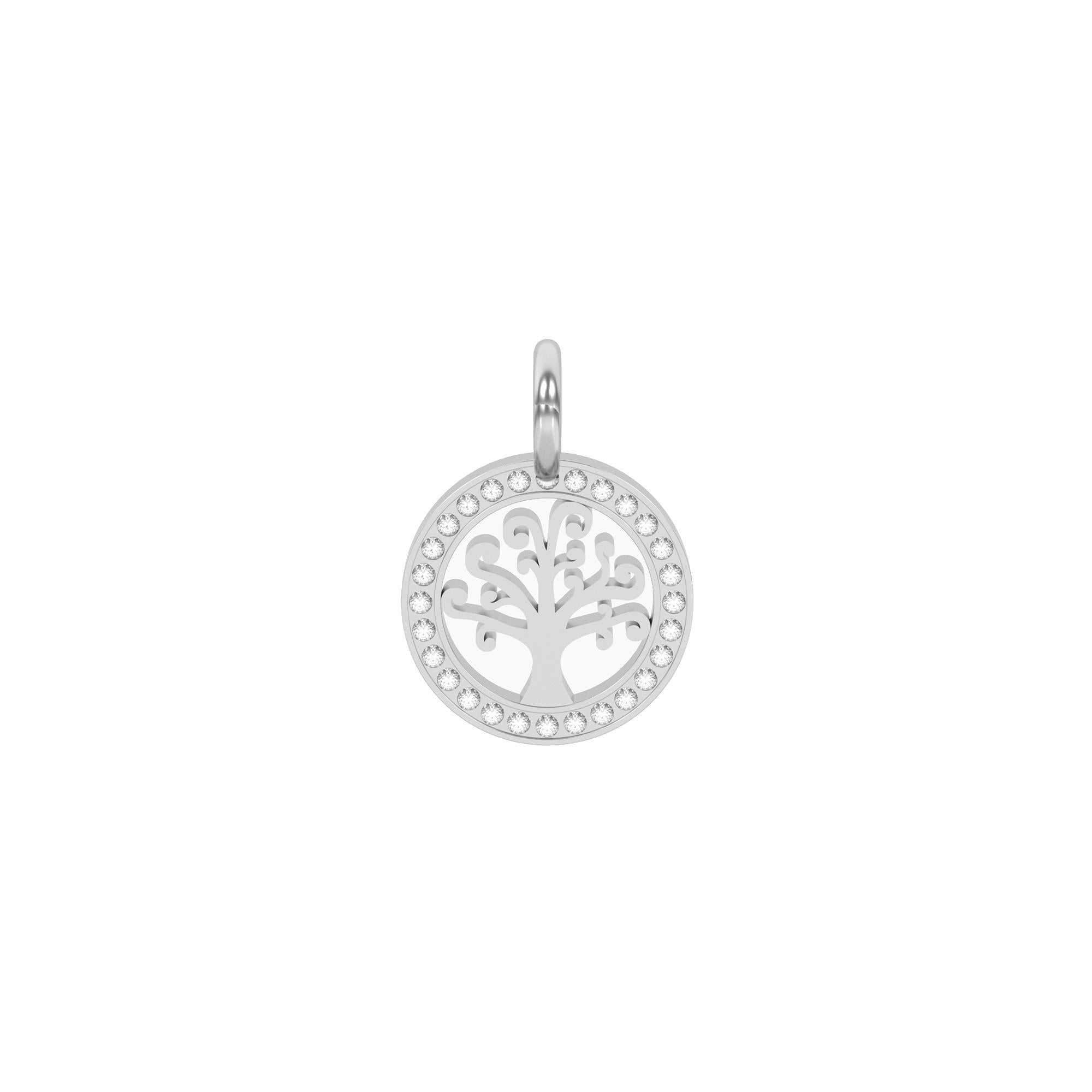 Ciondolo in acciaio a forma di albero della vita con cristalli.