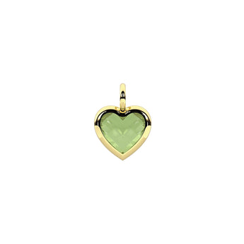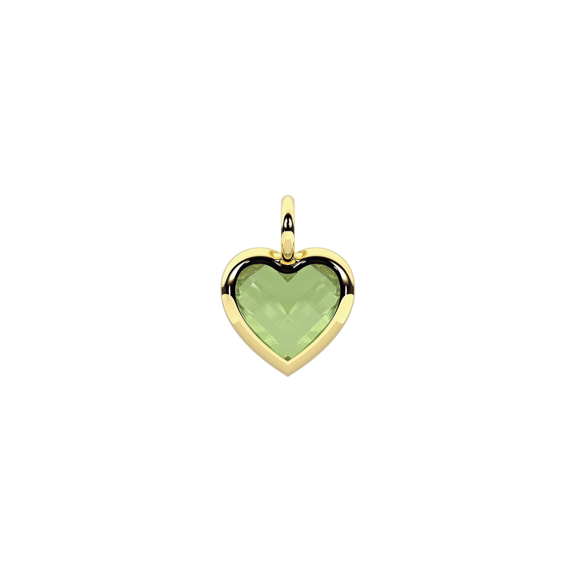 Ciondolo in acciaio e PVD giallo a forma di cuore con glass verde faccettato taglio briolette.