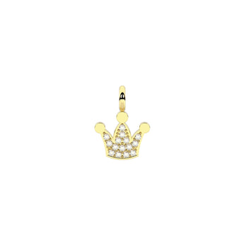 Ciondolo a forma di corona in acciaio e PVD giallo con cristalli bianchi.