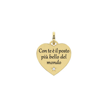 Ciondolo a forma di cuore in acciaio e PVD giallo satinato con cristallo