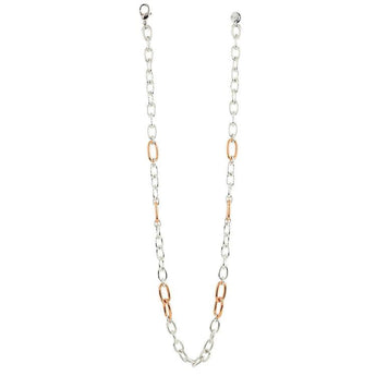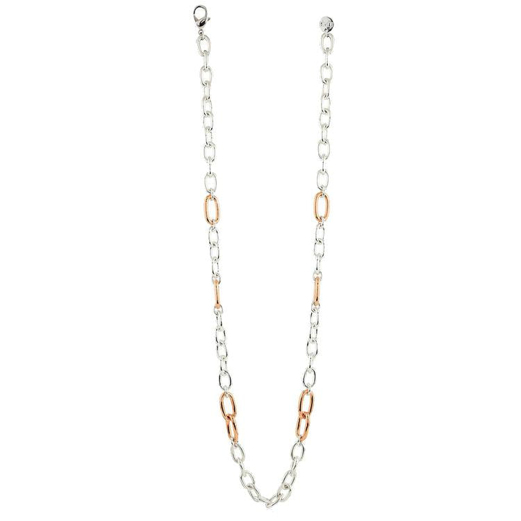 Collana Unoaerre in bronzo placcato rodio e oro rosa, maglia forzatina, lunga 90Cm.