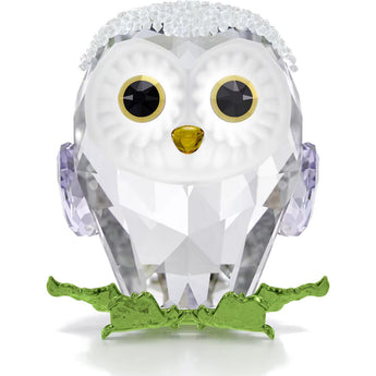 civetta, dagli occhi sfavillanti e attenti e la testa coperta di neve,