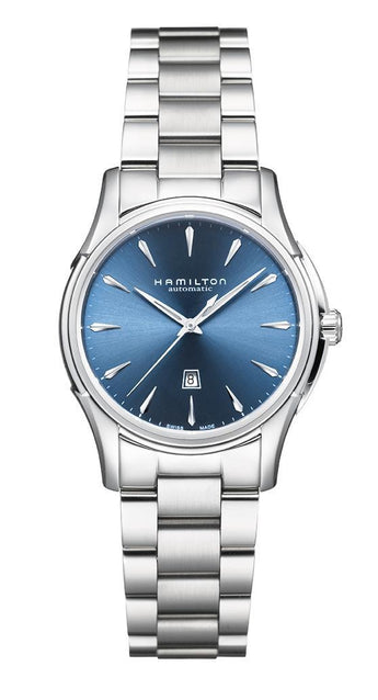 Il Jazzmaster Lady Auto è un Orologio Classico dalle linee moderne, con Cassa e Bracciale in Acciaio. Il Fondello trasparente permette di vedere il suo Movimento a Carica Automatica in funzione. Il Quadrante è di colore Blu con Indici applicati, indicazione dell'ora e della data. Ha il vetro zaffiro antigraffio e l'impermeabilità è di 50 Mt.