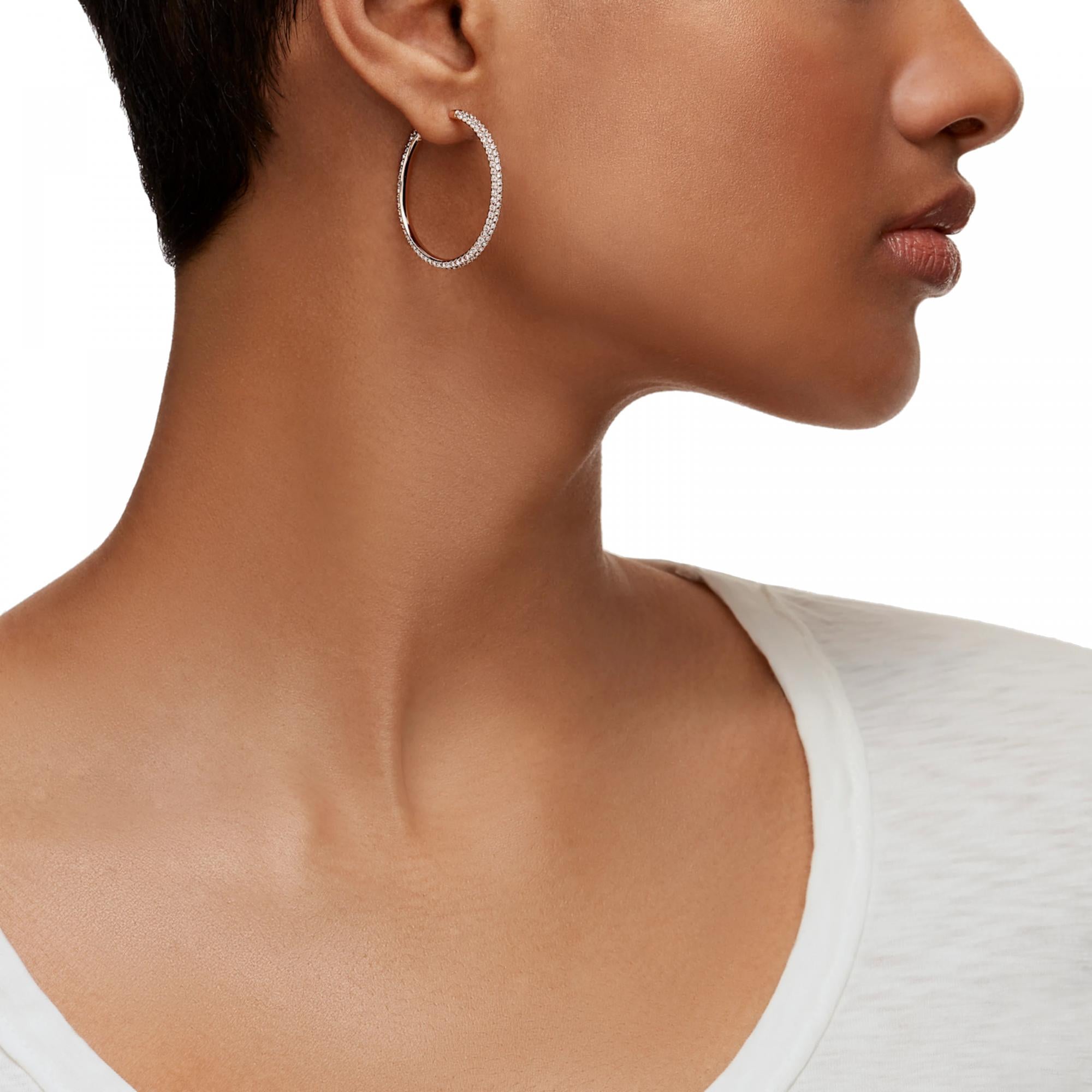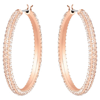 Scegli il regalo giusto per la Festa della Mamma o qualsiasi altra occasione con questo paio di cerchi d'altri tempi, decorato con pavé di cristallo, per richiamare lo speciale scintillio firmato Swarovski. Il delicato design placcato oro rosa è facilmente indossabile con ogni outfit, dal giorno alla sera.