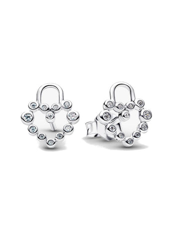Aggiungi un tocco di romanticismo al tuo stile con questi orecchini in Argento Sterling 925, caratterizzati da un lucchetto a forma di cuore decorato da piccole pietre luminose che catturano la luce ad ogni movimento.