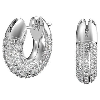 Un tocco moderno ai classici orecchini a cerchio, questo paio genderless conferirà dinamismo a qualsiasi outfit. Il design scultoreo celebra l’iconica tecnica pavé di Swarovski con cristalli luccicanti laminati incastonati in una montatura placcata rodio. Questo duo è adatto di giorno ma perfetto anche per la sera. Parte della famiglia Dextera, questi orecchini sono ideati dalla Direttrice Creativa Giovanna Engelbert per la Collection II.