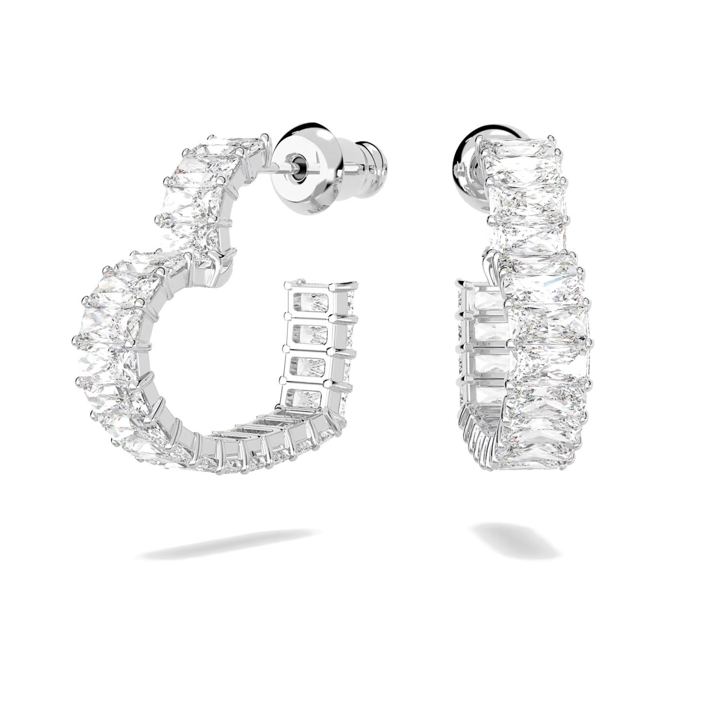 Orecchini Swarovski a cerchio Matrix Cuore, Piccoli, Bianchi, Placcato rodio