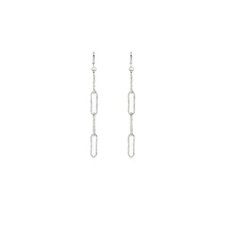 Orecchini Unoaerre in bronzo placcati rodio, maglia classica paper chain martellata. Chiusura a molla. Lunghezza 9 Cm.