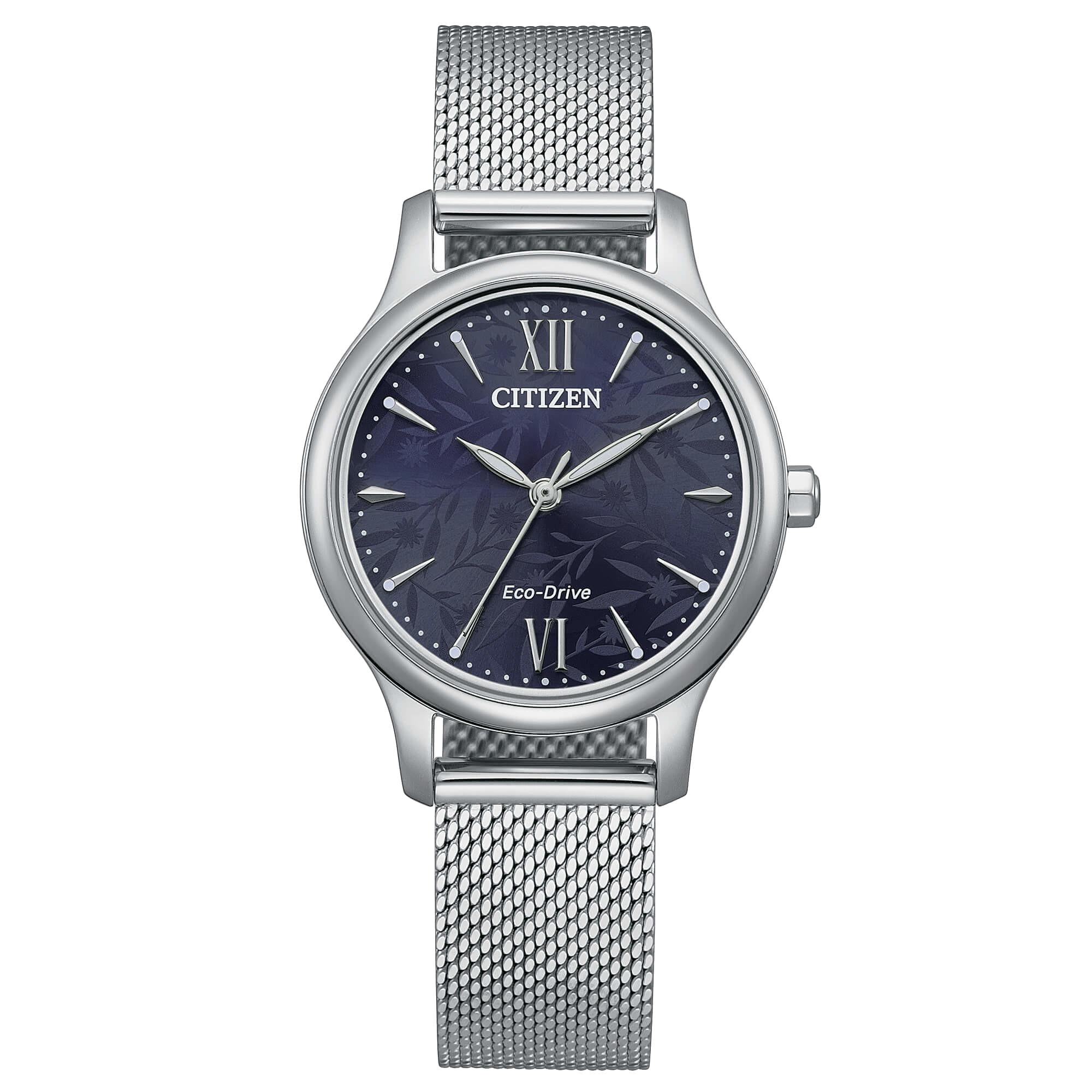 Orologio Citizen da donna con cassa in acciaio di diametro 30mm, colore del quadrante blu, vetro minerale. Meccanismo al quarzo con funzione di solo tempo. Resistenza all'acqua 3 bar.