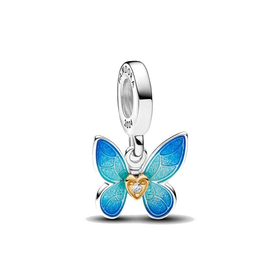 Aggiungi un tocco di bellezza, forza e trasformazione al tuo look con il Pendente Farfalla Pandora Club 2024. Realizzato in Argento Sterling 925, presenta ali dipinte in smalto turchese e blu trasparente con un messaggio inciso sul retro e un cuore in lega metallica placcata oro 14k con diamante creato in laboratorio. Aggiungi questo charm alla tua collezione per ricordarti di credere sempre in te stessa.
