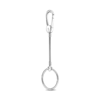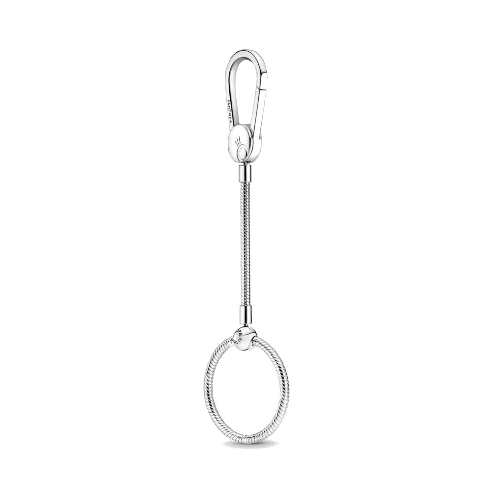 Personalizza la tua borsa con il porta-charm per borsa medio Pandora Moments. Rifinito a mano e realizzato in Argento Sterling 925, il porta-charm per borsa presenta una grande chiusura a moschettone e anelli caratterizzati dall’iconico motivo con maglia snake Pandora. Il porta-charm può tenere un massimo di cinque charm o pendenti.
