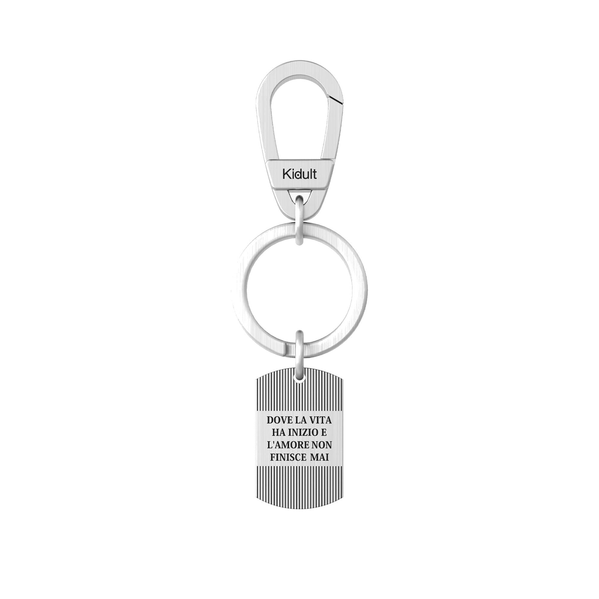 Portachiavi Kidult in acciaio con ciondolo e frase famiglia