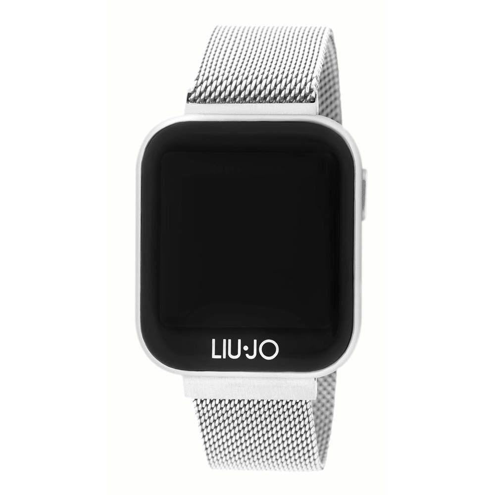 Orologio Liu Jo Smartwatch, referenza SWLJ001. L'orologio è in alluminio con il vetro minerale di forma rettangolare. Quadrante con display da 1,4'' color IPS completamente touch con risoluzione 240x240. Il cinturino è in maglia milanese con la chiusura a calamita. Ha numerose funzioni, fra le principali troviamo Funzioni di notifica smartphone, cardiofrequenzimetro al fondello, cronometro, meteo, sleep e stress monitor. Controllo remoto della musica per le più importanti app di streaming musicale. Spazio di archiviazione di 64KB+512KB.